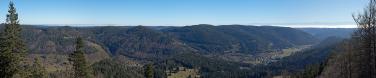 Mein zweites Panorama vom Aussichtsturm "Noahs Segel". Die Sichtverhältnisse waren besser als bei meinem Besuch ein Jahr zuvor, aber nicht so gut wie bei meinem Besuch auf dem Ellenbogen 2016, als es den Turm noch gar nicht gab. Durch die Rutsche am Turm lässt sich kein Vorschlag zu einer Tour auf einen Aussichtsturm in der Familie so leicht durchsetzen wie der zu Noahs Segel. Deshalb bin ich vergleichsweise oft hier, obwohl die Aussicht vom Turm noch entscheidend besser gewesen wäre, hätte man ihn nur ein Stockwerk höher gebaut.
