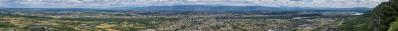 Im Vogelsberg gibt es ohnehin nur wenige Aussichtspunkte. Davon sind einige derart mit Windrädern zugestellt, dass man von der Landschaft kaum noch etwas sieht. Ein Beispiel davon folgt noch. Weiter im Norden sind die Windräder vorübergehend nicht ganz so dicht gesät, bevor es wenige Kilometer mit dichtem Gestänge weitergeht. Der hier gezeigte Blick zeigt die typische Landschaft zwischen Vogelsberg und Rhön. Das Pano zielt nicht darauf ab, eine besondere Fernsicht, sondern vor allem die Landschaft zu zeigen. Trotzdem ergeben sich ein paar Blickfenster in die fernere Umgebung.
