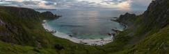 Nach der Besteigung des mit 841 Metern dritthöchsten Berges der Färöer und dem anschließenden Besuch von Kap Enniberg, dem mit 754 Metern wohl höchsten senkrechten Kliff der Welt (spektakulärer Tiefblick, wenn man sich bis an die Abbrüche traut!), fiel uns im Abstieg diese Steinformation ins Auge. Mich erinnerte sie direkt an den Kjeragbolten am Lysefjord in Südnorwegen, auch wenn der hier zu sehende Stein natürlich ein paar Nummern kleiner und der Tiefblick unter den Schuhen nicht ganz so spektakulär ist ;-)