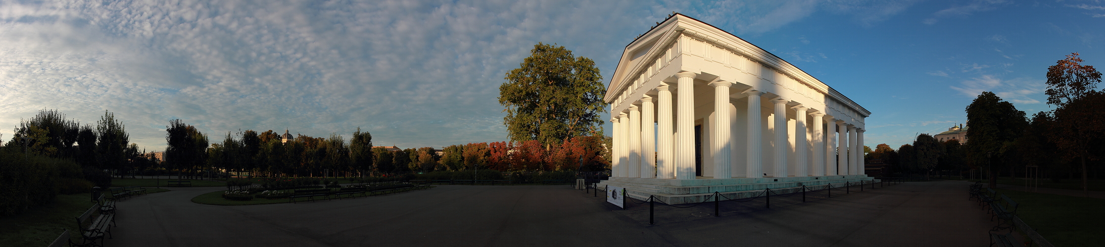 Der Theseus - Tempel wurde 1819-23 durch Peter von Nobile erbaut. Er ist ein Nachbau des Theseions in Athen (Tempel des Hephaistos) und wurde wie Jörg richtig bemerkt hat 2008-10 renoviert wobei versucht wurde, seine ursprüngliche Farbe (Bleiweiß) auf unbedenklichere Art und Weise wieder herzustellen.