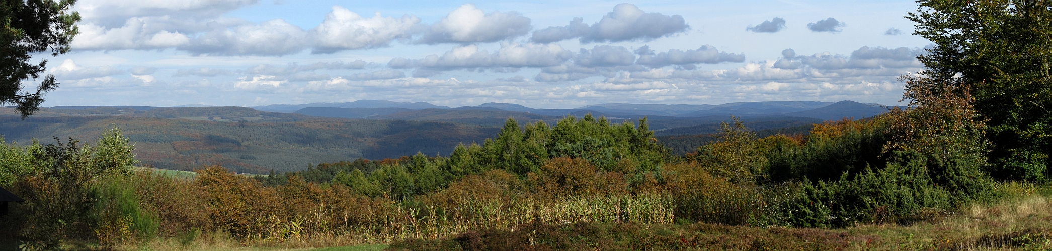 Der dicht bewaldete Spessart bietet im Vergleich zu anderen Mittelgebirgen nur wenige Aussichtpunkte. Einen der besten Ausblicke aus dem Spessart zur Rhön fand ich auf dem Stacken. Die Aufnahmen zu diesem Panorama entstanden bei einem Familienausflug von Mernes aus.