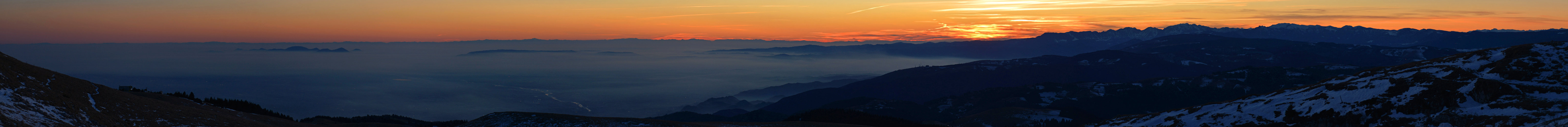Pano extreme, from very long distance. The Monte Grappa is a mountain in the Alps that allows you to see almost the entire eastern Po Valley and the Tuscan-Emilian Apennines. The peak identified the farthest is the Alpe della Luna, 248km. To give an idea of the distance, we're close to the border between Romagna, Tuscany and Marche.