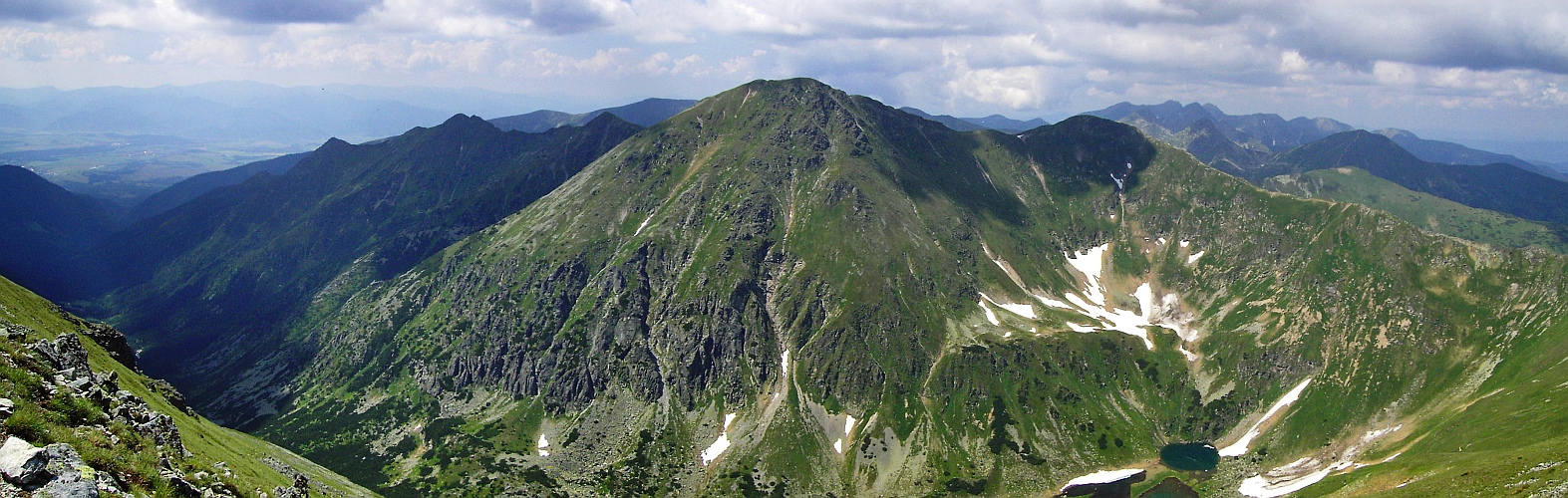 As I see, there`s no panoramas from ridges of Western Tatra. Its view from border summit Klin/Starorobocianski Wierch toward second highest in that part of Tatra Jakubina.