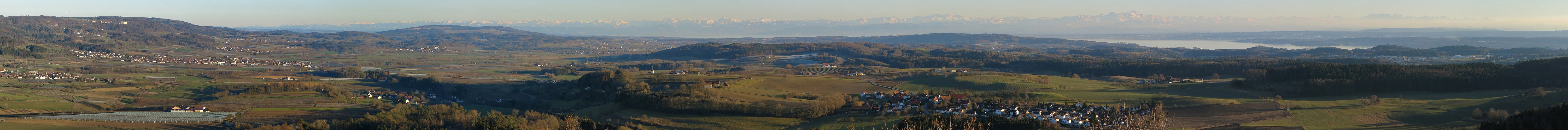 23 HF-Freihandaufnahmen mit meiner G15 bei 140 mm KB. Grundsätzlich bietet der Aussichtsturm eine Rundumsicht. Der Blick nach Norden zum gleichnamigen Ort und einige nahe Höhenzüge ist aber vergleichsweise uninteressant, wenn auf der anderen Seite die Alpen leuchten. Daher beschränke ich mich hier auf das Wesentliche. Jörg zeigte sein Parallelpanorama schon viel früher: die Nr. 14963