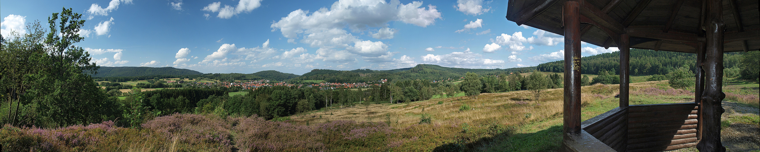 ein paar Tage Urlaub können nicht ohne Panorama bleiben, selbst wenn die Region auch einmal alpenfern ist. Bestes Rückseitenwetter in einer abwechslungsreichen Landschaft ließen eigentlich keine Wünsche offen. Südlich von Wolfshagen liegt die Schäferbaude. Vom dortigen Parkplatz sind es ca. 800 Wegmeter (keine Höhenmeter) bis zum aussichtsreich gelegenen Pavilon.