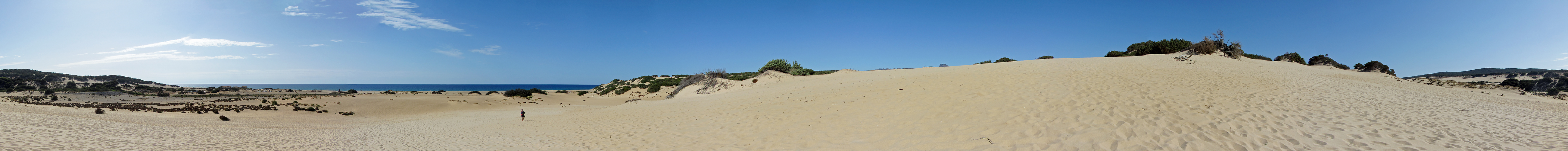 Bei Arbus entlang der Costa Verde erstrecken sie sich die Dune di Piscinas d'Ingurtosu: Goldgelb leuchtende Sandberge, die bis ins Unendliche zu reichen scheinen. Verstreute Wacholderbüsche krallen sich mit ihren Wurzeln in die Sandberge. Nur sie haben den langsam wandernden Dünen etwas entgegenzusetzen, denn der vor allem im Winter treibt der hier kräftig wehende Mistralwind die Sandkolosse langsam aber sicher in Richtung Land. Im Windschatten der uralten Wacholdersträucher gedeihen noch ein paar einzelne Mastix- und Ginsterbüsche - sonst gibt es nur Sand weit und breit. (www.sardinien.com)