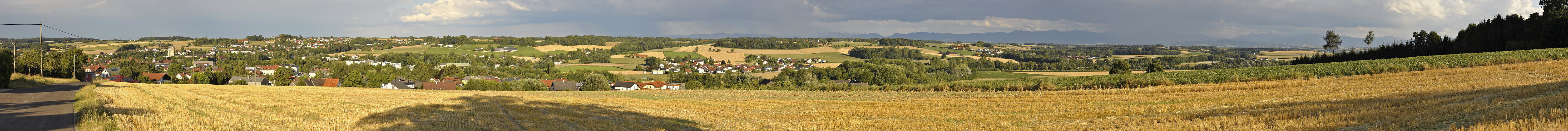 Die Asphaltstraße habe ich bewusst noch ins Panorama genommen, weil ich irgendeinen anderen Vordergrundaspekt zum abgedroschenen Weizenfeld noch im Bild haben wollte...zugegeben es hätte etwas natürlicheres besser gepasst, aber da war nix besseres in der Nähe.