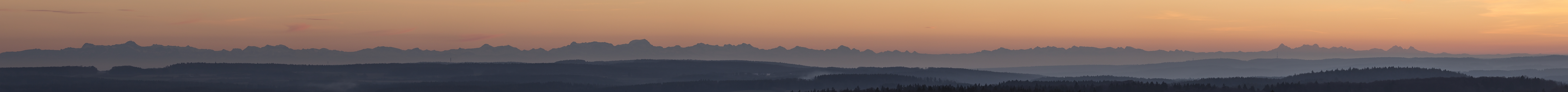 Während des Aufenthaltes auf dem Augstbergturm wurde mit fortschreitender Abenddämmerung die Sicht auf die fernen Schweizer Berge, insbesondere die berühmten Berner Riesen in über 200 Kilometer Entfernung, immer besser.