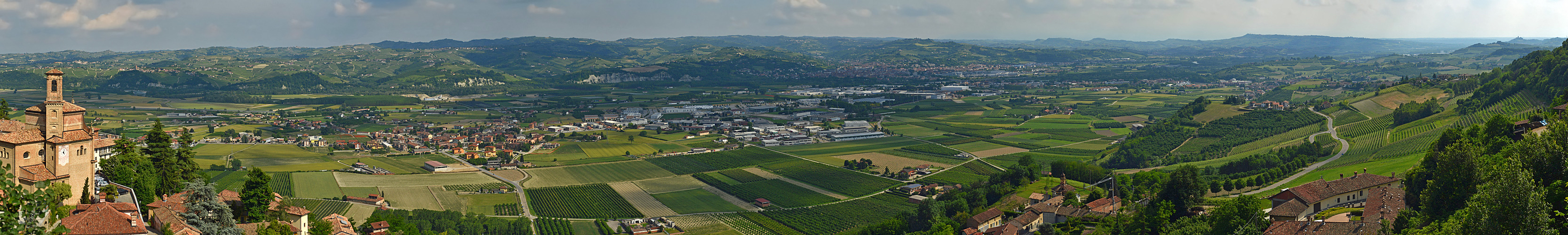 We are in one of the most famous Italian wine regions. On the hills to the left of the river Tanaro, where is Guarene, is produced Roero. On the hills to the right of the river Tanaro is produced Barbaresco and Barolo. It is also visible in the distance the town of Alba, which is the capital of this area.