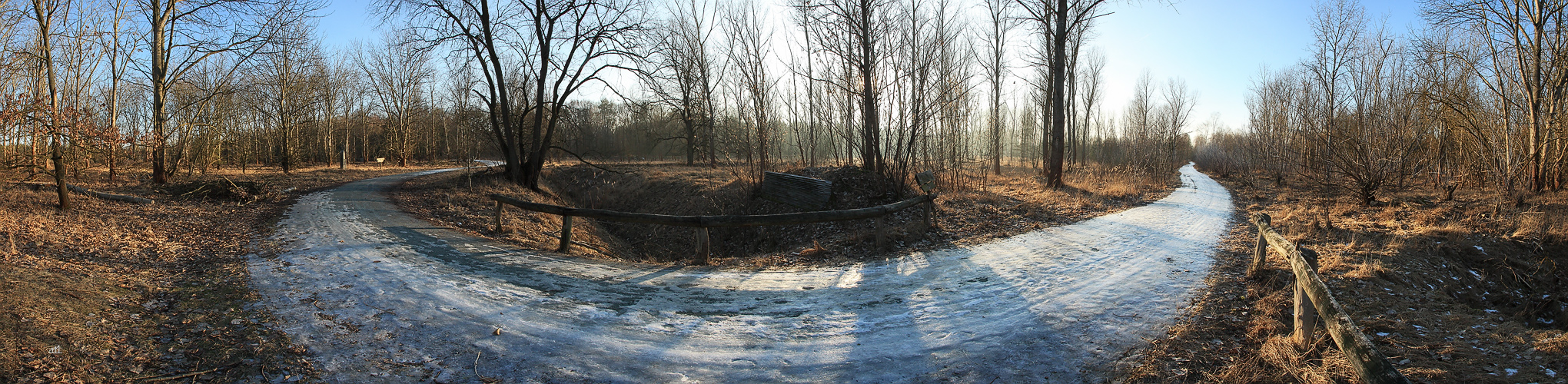 Die Wege im Wald sind immer noch vereist, selbst dort, wo die Bäume nicht dicht bei dicht stehen. Doch wenn die Sonne weiter so wie in den letzten beiden Tagen scheinen wird, dann werden sie bald vom Eise befreit sein.