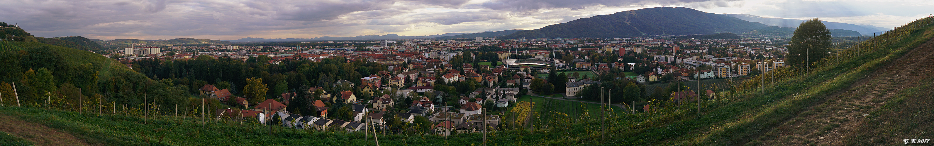 Für Interessierte einige Links: https://de.wikipedia.org/wiki/Untersteiermark https://de.wikipedia.org/wiki/Maribor https://www.slovenia.info/de/ausflugsziele/stadte/maribor-und-das-pohorje-gebirge Liebe Grüsse Technisches: Sony Alpha 6000, Sony SEL 16-70 mm ZA, F/4, Carl Zeiss Vario-Tessar T*, 10 RAW-HF-Bilder, freihändig, ISO 100, 1/80s, F/6,3, Brennweite: 16 mm (= 24 mm KB), 60% Crop, Blickwinkel: 190°, Blickrichtung linke Seite: 90° E, Stitcher: Hugin, Bildbearbeitung: RAW-Therapee, Gimp, IrfanView, ..., Aufnahmedatum und -zeit: 12.Oktober 2016, 15:55 Uhr MESZ (1.Bild), Beschriftung und Ausrichtung mit udeuschle.de. |