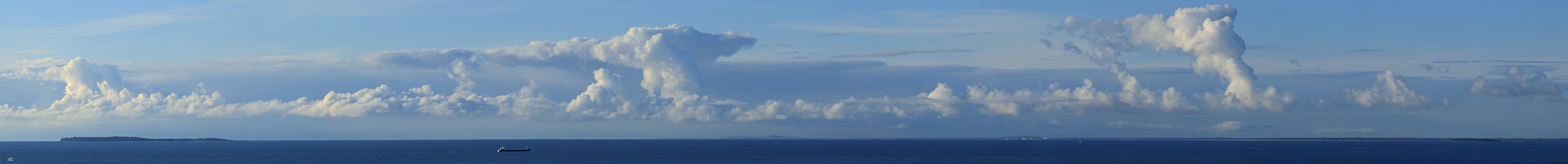 Da an diesem Morgen wieder mal eine der selteneren Wetterbedingungen mit Weitsicht war, konnte man die Küste Usedoms bis zum Langenberg schön deutlich sehen - dazu über die ganze Breite die schönen Wolkenformationen. ...