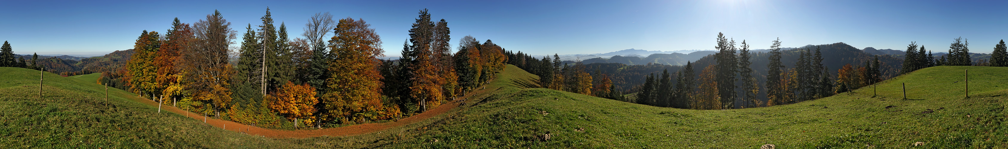 Die Kuppe ist zwar Wiese, aber an die Flanken hat es Wald.