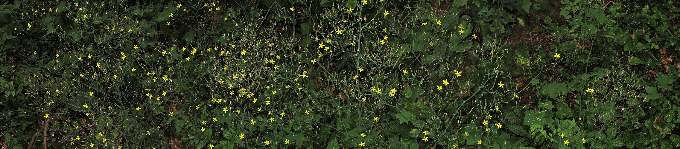 ...gibt es auch noch Blüten wie hier die gelben Sterne des Mauerlattichs (Mycelis muralis). Diese zarte, im sommerlichen Wald allgegenwärtige Pflanze mit ihrem filigranen Blütenstand bereitet mir immer viel Freude, wenn ich sie sehe. Für die Aufnahmen musste ich den Blitz einsetzen.