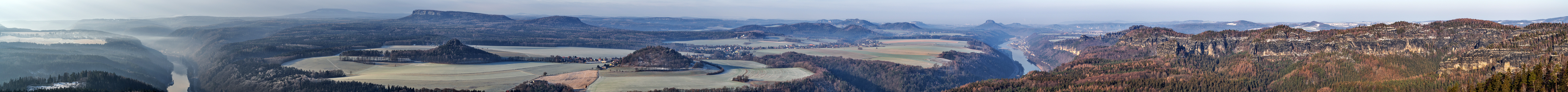 Entwickelt fast wie meistens, in diesem Fall bei 5700K. Die Regler für Kontrast und Klarheit, welche ich sonst nicht verwende standen hier auf 15% (also eher auch nicht viel). Die Entdunstung im Vordergrund moderat und im Hintergrund eher gering. Heraus kam dann ein Pano, welches ab den Schrammsteinen magentalastig war und links davon viel blaustichiger als in Wirklichkeit.