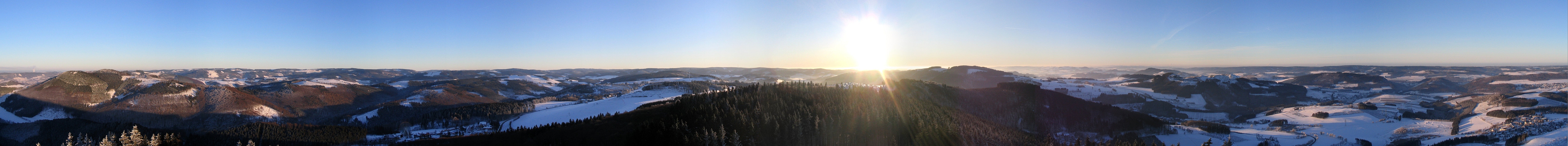 Erneut ein Panorama vom Stüppelturm bei Bestwig im Sauerland. Es wurde zwei Tage vor meinem Panorama "Westfälische Rundschau" zu vorgerückter Stunde aufgenommen. Was diesem Moment an Fernsicht fehlte, machte er durch das Licht wieder wett. So bot sich hier eine einzigartige Stimmung.