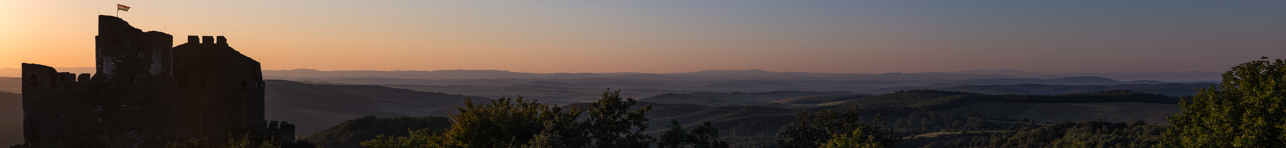 Die düstere geschichtsträchtige Hollókö Vár im Vordergrund, die im Wind wehende ungarische Fahne als Symbol der Freiheit und die slowakischen Berge bis zur Hohen Tatra im Hintergrund ... zur Geschichte der Burg, siehe Link im Umgebungspanorama.