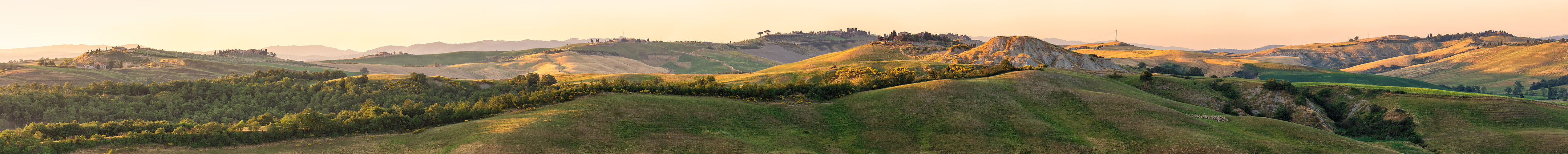 Eine gelegentliche Unterbrechnung in der Irland-Reihe tut vielleicht ganz gut, nicht das es auf Dauer langweilig wird. Also ab ins Archiv. Die Aufnahmen zu diesem Panorama entstanden im Frühsommer 2014 und zeigen die Hügel der Crete Senesi kurz nach Sonnenaufgang. Die Schafe, einzig begleitet von den Hütehunden, sind schon unterwegs und beim morgendlichen Streifzug durch die Natur ist durchaus Vorsicht geboten. Zwar sind die meisten Tiere sehr scheu und ergreifen die Flucht wenn sie Menschen hören oder riechen, doch einem Lebewesen sollte man um diese Zeit nicht zu nahe kommen. Damit meine ich nicht die Rotten von Wildschweinen, die es hier im Unterholz zuhauf gibt, sondern von einem ganz besonderen "Schwein" - dem Stachelschwein. Das nachtaktive Tier das von Natur aus eher ruhig und friedvoll ist, kann vor allem beim Sonnenuntergang und während der frühen Morgenstunden ein sehr unangenehmer Zeitgenosse werden. Eine solche Begegnung blieb mir während meiner vielen Aufenthalte in der Crete glücklicherweise erspart, obwohl ich das Tier selbst gerne mal in freier Wildbahn gesehen hätte. Zahlreiche Stachelfunde zeugen zumindest davon, das es dieses Tier in der Umgebung gibt.