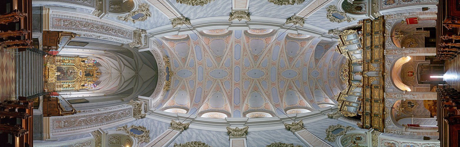 Das Langhaus der Stiftskirche stammt im Kern aus dem 11. Jh, der Gründerzeit des Klosters, und der gotische Chor entstand im 15./16. Jh. Im 17. und 18. Jahrhundert wurde das Langhaus nach und nach weitgehend im barocken Stil ausgebaut, wobei durch helle Gestaltung die sanften frohen Farben gut zur Geltung kommen. Oberitalienische Meister sorgten für verspielte Stuckaturen (1665 bis 1681). Das Hochaltarbild: Mariä Aufnahme in den Himmel - schuf Andreas Wolff. Die Statuen am Altar: hll. Petrus, Paulus, Gregor, Altmann, Katharina, Barbara und die Gottesmutter Maria - sind von Hermann Schmidt (1639). Franz Staudinger fertigte das Chorgestühl mit sehenswerten Intarsienarbeiten an. Acht Seitenkapellen erweitern das Kirchenschiff. Samsung NX 200 7 x HF, RAW f = 18 mm (KB = 27 mm) |