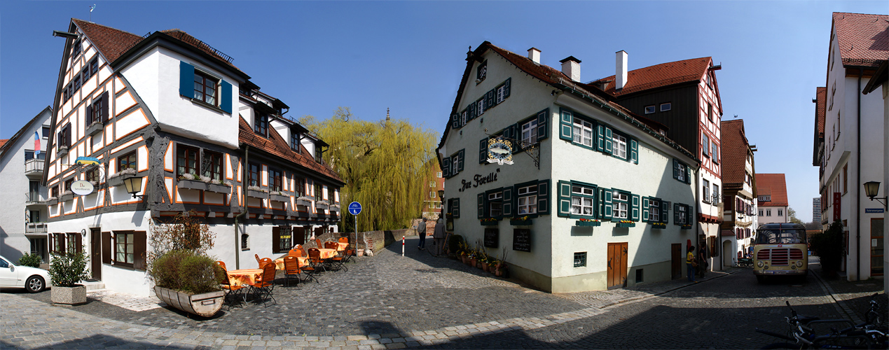 Das Fischerviertel mit seinen verwinkelten Gassen, engen Durchgängen, kleinen Brücken und Stegen ist das älteste Siedlungsgebiet Ulm's, in dem einst Fischer- und Gerber an den Armen der Blau lebten.