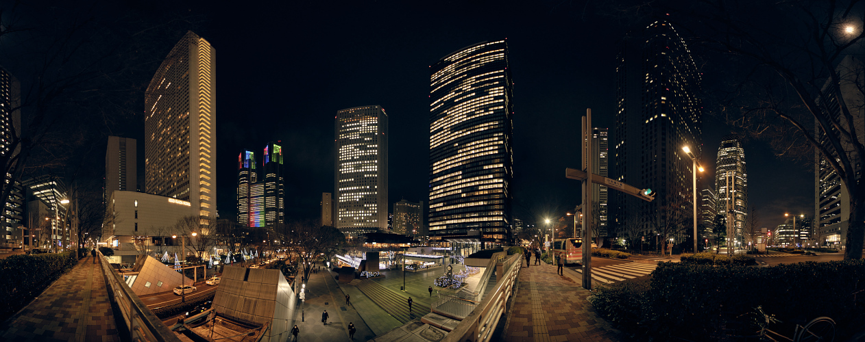 Ein 360° Freihand-Panorama in 2 Reihen aus dem Verwaltungsbezirk Tokios, welches mir tatsächlich viel Mühe bereitete. Leute, Fahrzeuge (große wie kleine) waren stets in Bewegung. Selbst die Ampel war natürlich mal Rot, Grün und wieder Rot. Die Weitläufigkeit täuscht etwas - man musste den Kopf schon ordentlich heben. Der Mond schien übrigens auch und das Fahrrad war nicht meins :-) ...