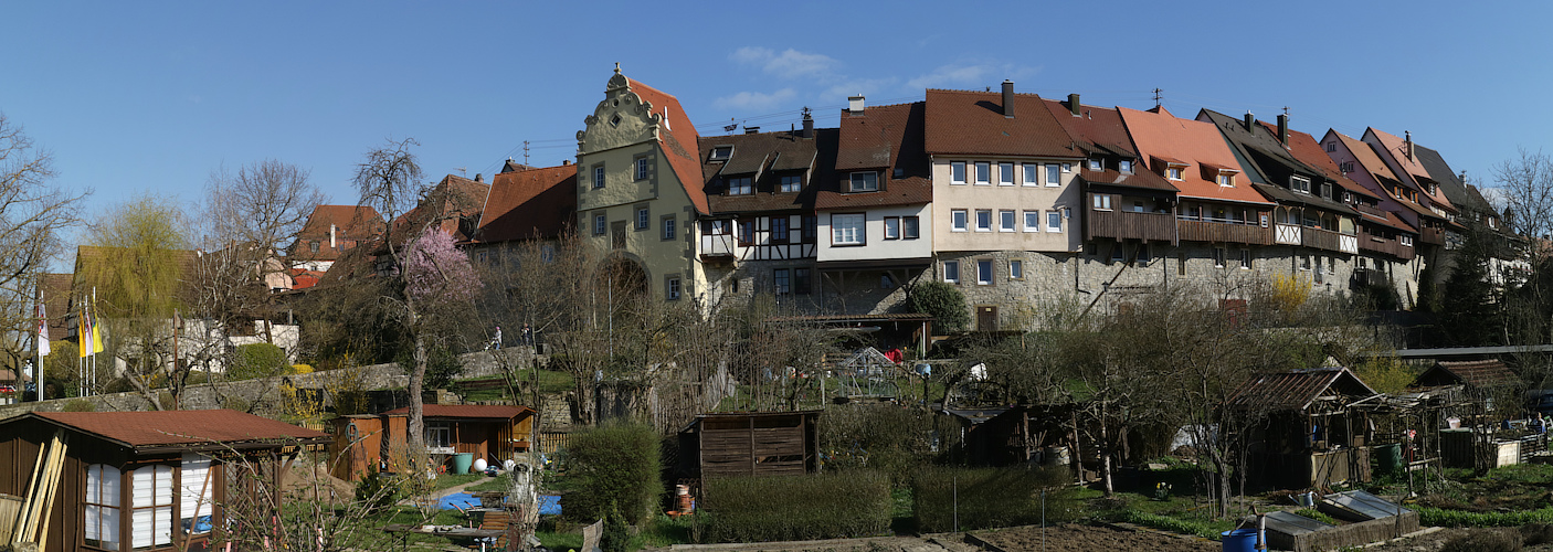 Am Karfreitag war ich auf einer Radtour auch an dieser Stadt vorbeigekommen und hatte diese Ansicht panoramisiert. Nachdem ich das Panorama ursprünglich schon Gestern einstellen wollte, habe ich noch einen Tag zugewartet, um mit dem Uploadtermin einen hundertsten Geburtstag mit dem auf dem Bild zu sehenden Geburtshaus zu würden.