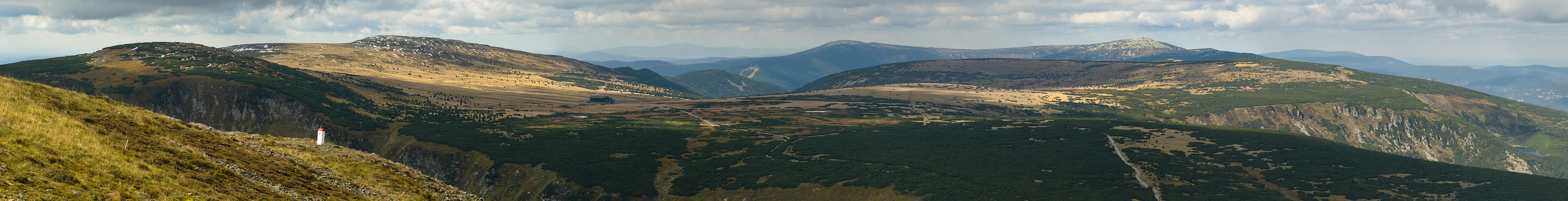 PS: Du stehst hier offenbar schon weit unterhalb des Gipfelplateaus. Dadurch konnte es kein Blick übers ganze Riesengebirge werden. Es ist aber ein schöner Ausschnitt in Richtung Westen.