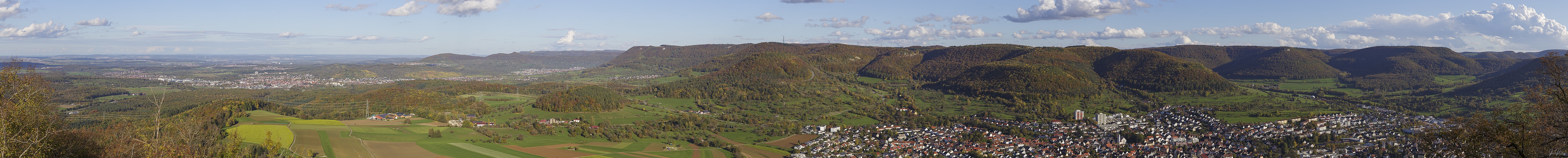 Nachdem auf meinem Panorama vom Rossfelsen (Nr. 31484) die Achalm gerade so aus dem Nebelmeer herausgeschaut hat, habe ich auf meinen Bildern von dort nach einem passenden Gegenblick gesucht. Dieses Bild entstand auf dem Aussichtsturm auf der Achalm und zeigt die Felsen rund um das Rossfeld davon am besten, auch wenn es nicht mit der maximalen Brennweite erstellt wurde.