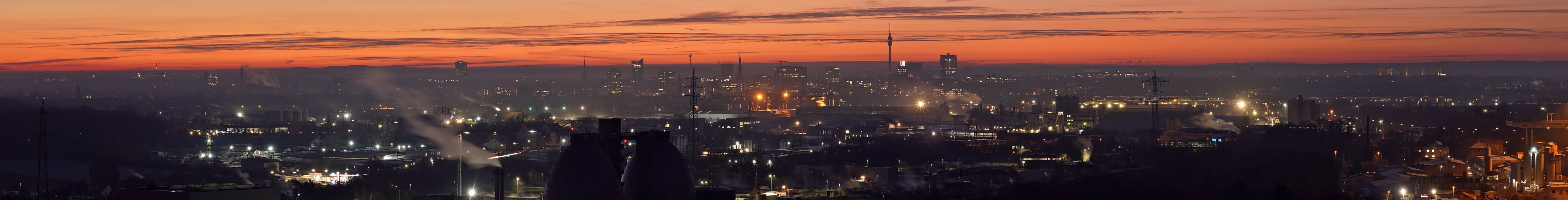 Die Halde Deusenberg im Dortmunder Norden bietet ringsum einen freien Blick ins Umland. Nach Süd-Osten geht die Sicht über den Dortmunder Hafen in Richtung Innenstadt. Schon öfters hatte ich mir vorgenommen mal Bilder im Dunkeln von da aus zu machen. Im Winter geht die Sonne erst so weit in Richtung Süden auf, dass der Himmel hinter der Stadt im Morgenrot leuchtet. Letzten Dienstag war ich dann bei klirrender Kälte vor Ort. Mit dem Ergebnis war ich noch nicht ganz zufrieden. Am Donnerstag gab es glücklicherweise noch einmal genau das gleiche Wetter, so dass ich etwas besser vorbereitet für Kälte und Dunkelheit noch einmal ein paar Serien machen konnte.
