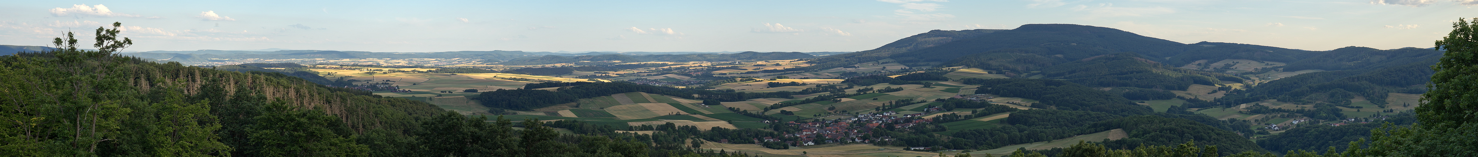 2013 war ich schon einmal im Sonnenschein hier, hatte aber keine Fernsicht zur Rhön. Ich versprach wiederzukommen und 9 Jahre sowie 2 Kameras später hat es geklappt. Diesmal war es bedeckt, die Fernsicht aber sehr gut. Für eine bessere Präsentation der Rhön auf nur 500 Pixel Bildhöhe böte sich eine höhere Brennweite an. Auf den dominanten Meißner wollte ich im Bild dann aber doch nicht verzichten. Er beherrscht das Panorama vom Rosskopfturm. Bis auf kleine Ausschnitte sind die übrigen Blickrichtungen zugewachsen.