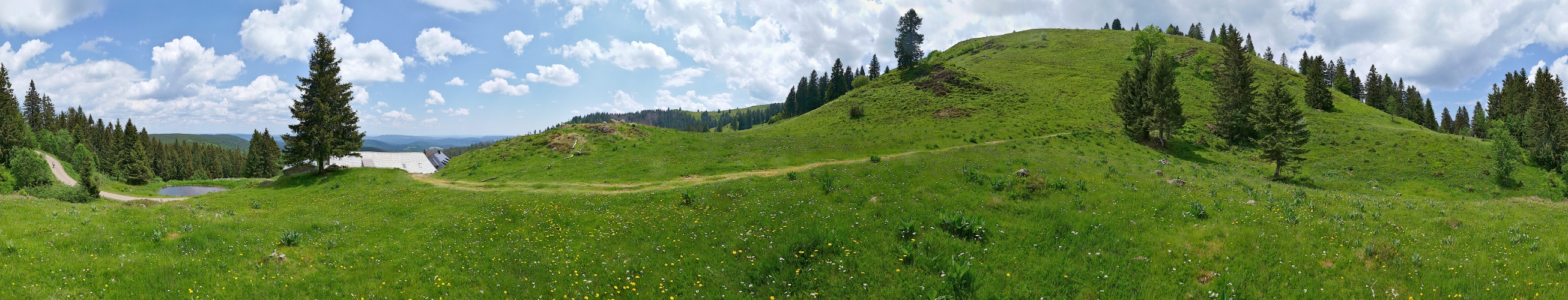 Hier auf 1321 Meter ist das Grün noch frisch und die Vegetation hat noch viel zu tun. Bei der Hütte parkiere ich immer mein Rad um von hier noch den Baldenweger Buck 1461m am Feldberg zu Fuß zu erreichen.