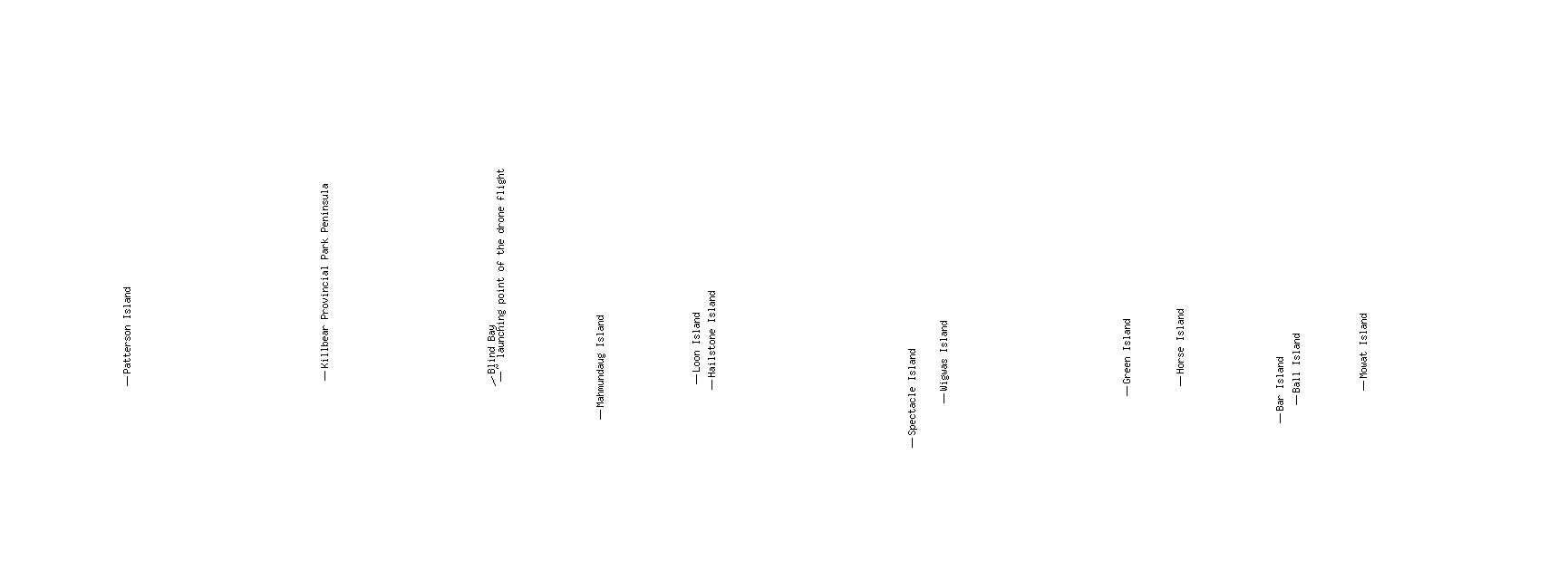 The pano was taken at the max allowed altitude of 120m above ground, approximately 2km from the shore at Killbear Provincial Park. During the flight I captured 3 spherical panos (there's a preset for that) and when the drone returned I had used about half the battery charge. I realize the light conditions were fairly 'extreme' for the drone's little camera. Probably I should have captured additional individual shots of the backlit area into to the sun. Still I didn't feel too adventurous, because I had only once before flown the drone such a distance and felt a bit of anxiety.