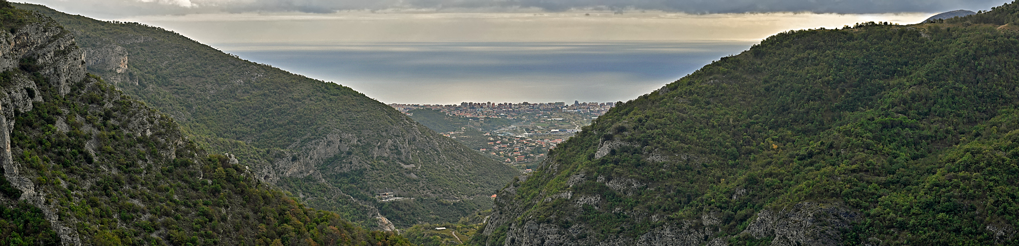 The road that connects Loano, in Val Varatella (which is the one seen in the panorama), with Bardineto, in Val Bormida, allows numerous views of the mountains of the valley. The sea, however, often remains not visible. From this point you have an unusual V-shaped view of the sea.
