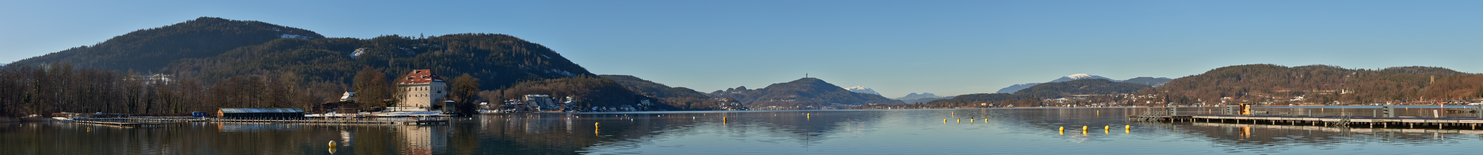 Steht man in Klagenfurt am Ufer des W-Sees, dann überblickt man nur die "Ostbucht". Nicht einmal Maria Wörth ist sichtbar; der Blick geht "nur" bis Reifnitz (zum Schwimmen zu weit ...). Linkerhand der Ansitz Maria Loretto, rechts Krumpendorf.