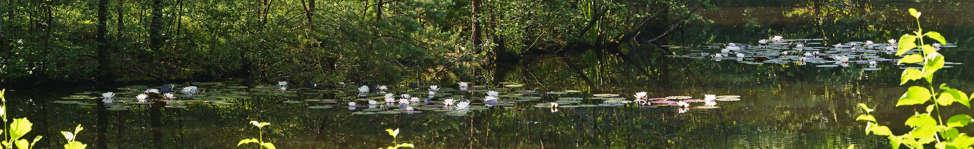 Seit vielen Jahren erscheinen die Seerosen (Nymphaea alba) auf diesem Teich an den gleichen Stellen. Er ist aber tief genug, um ein Zuwachsen und letztlich Verlanden zu verhindern.