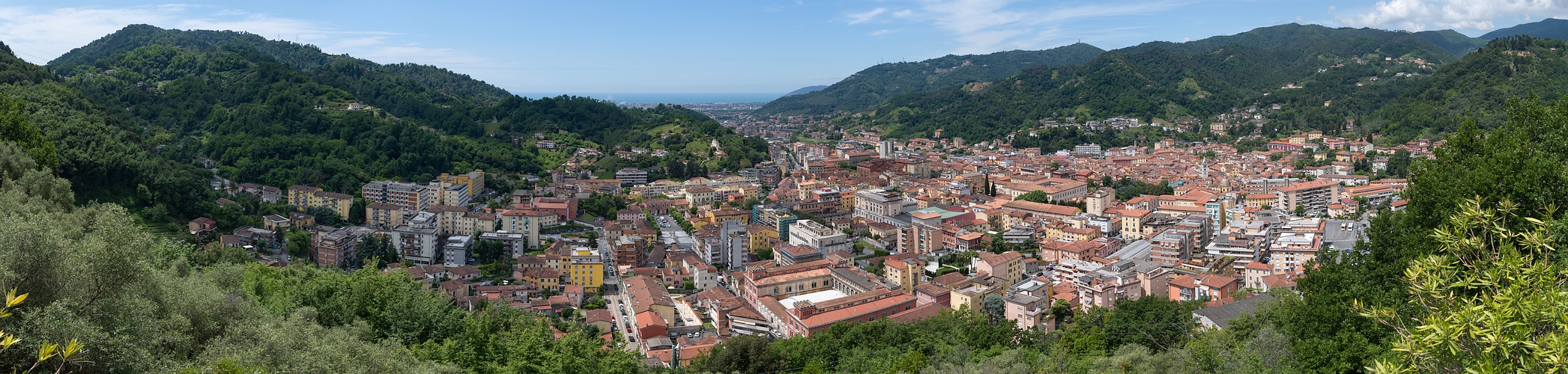 Die Stadt Carrara hat gut 60.000 Einwohner und zieht sich hinaus bis an das Mittelmeer zum Hafen von Marina di Carrara. Wie herrlich eingebettet in die Ausläufer der Apuanischen Alpen diese Stadt liegt, lässt sich auch gut von der Auffahrt ins Campoceccina in meinem Panorama #27995 erkennen, das ich im Jahr 2017 aufgenommen hatte.