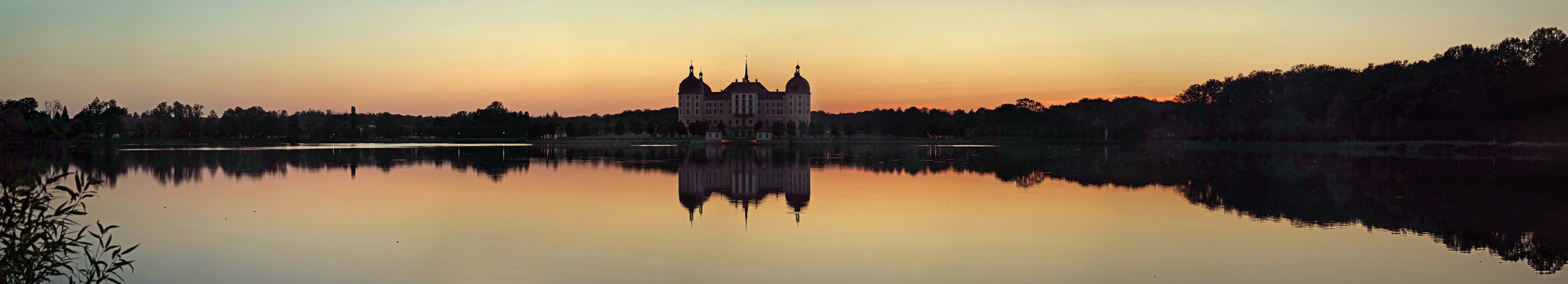 Die ruhige Abendstimmung gefällt mir. Leider ist es an diesem Ufer nicht möglich, das Schloss in perfekter Symmetie abzulichten. Ich finde daher gut, dass du das Bild links mit dem Gebüsch abschließt. Das zeigt, dass du gar nicht weiter nach links gehen kannst, es sei denn, du packst die Gummistiefel aus. Der Seezugang, auf dem du stehtst, ist ja quasi die Verlängerung des Kanals hin zum Fasanenschlösschen. Anscheinend haben die Preußen damals nicht so perfekt geplant, üblicherweise wurde versucht, die Sichtachsen als Wege auszubilden und so die Sicht freizuhalten.