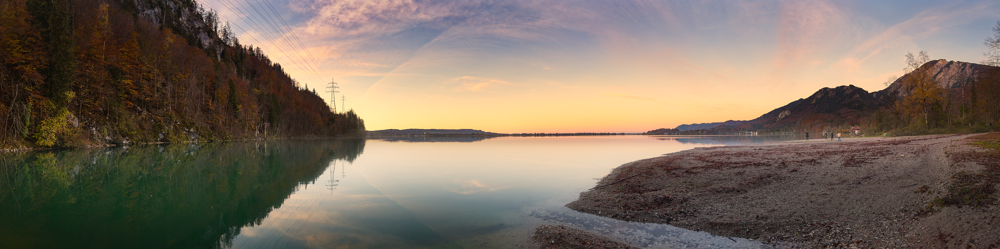 Abendliches Stelldichein am Kochelsee, genauer gesagt hier an der Mündung des Jochbachs.