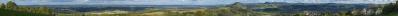 Der Tag begann zunächst mit mäßiger Fernsicht. Daher entschlossen wir uns die Aussicht von der Ruine Hohenkrähen zu erkundigen. Von dort gab es noch kein Pano. Nach Süden gibt es ein schönes Blickfenster Richtung Alpen, aber diese waren kaum zu erkennen. Nach Norden gibt es ein kleines Blickfenster in den Hegau. Links begrenzt die Burgmauer das Pano, rechts ein riesiges Gewerbegebiet das Tal, weshalb ich mich zu diesem Ausschnitt entschied. Der Tag endete bekanntermaßen bei herrlicher Fernsicht.