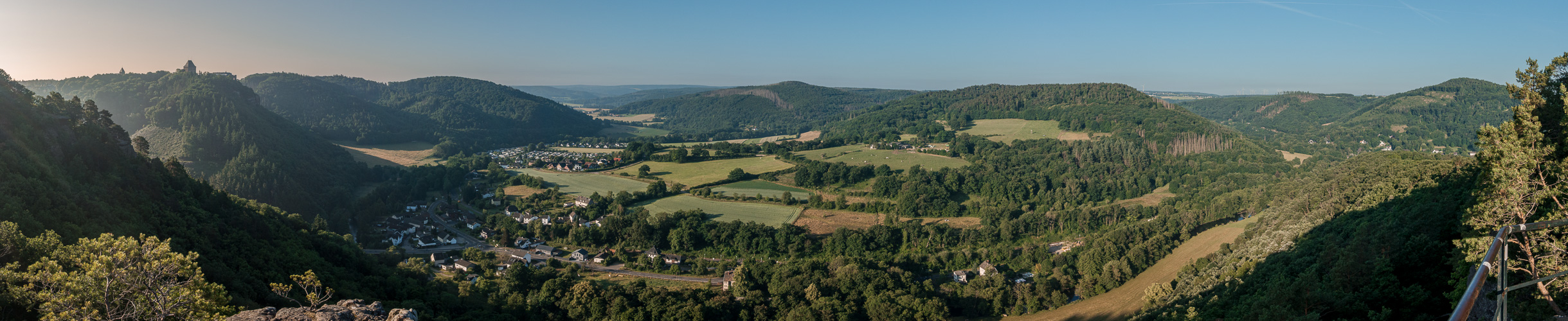 Daher will ich dieses Wochenende mit einem Rätsel beginnen. Hier, hoch über dem Flüsschen, sollte ein ausreichender Überblick möglich sein, um den Aufnahmestandort zu bestimmen. Zumal dieser auch einen Namen trägt.