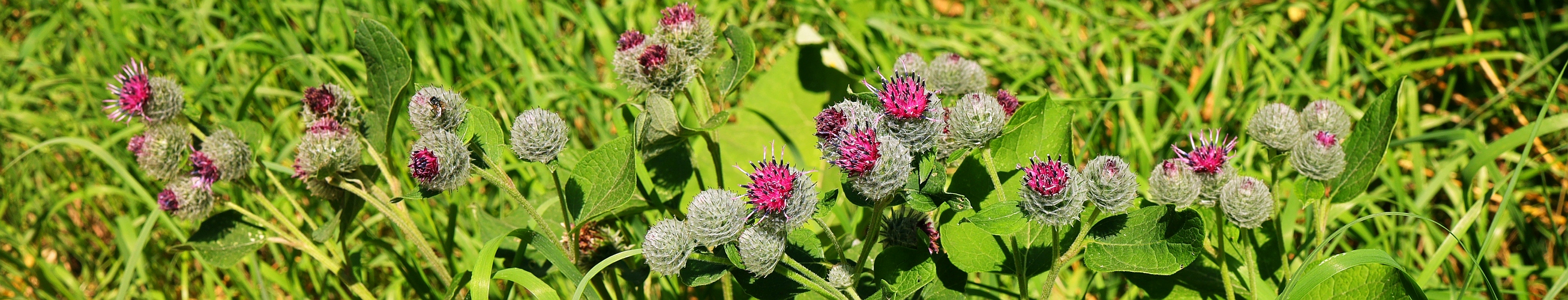 Kletten (hier: Filzige Klette, Arctium tomentosum) gehören sicher nicht zu den beliebtesten Pflanzen. Besonders mit ihren stachligen klebrigen Früchten macht man nur ungern Bekanntschaft. Sie reifen erst im Herbst aus, während die Blüten meist im Spätsommer erscheinen.