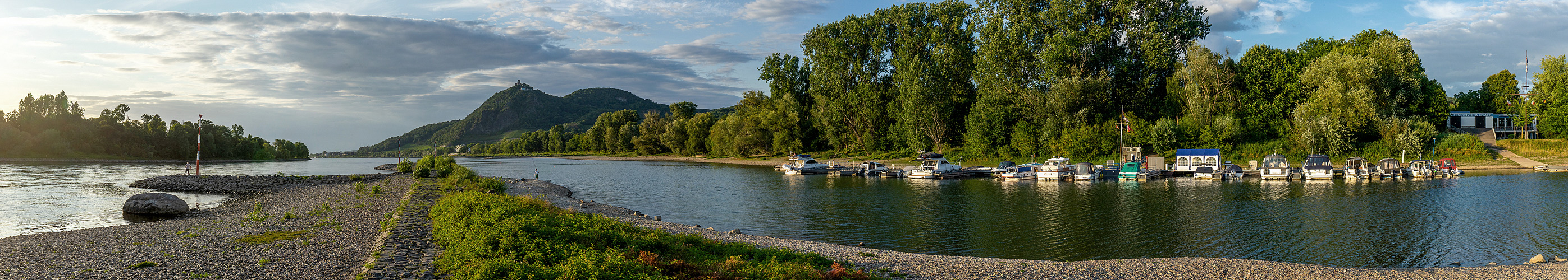 Am Abend nach meiner ersten Rheinsteig-Etappe habe ich in Bad Honnef abends noch die Insel Grafenwerth besucht, die erstens einen umwerfenden Blick auf den Drachenfels bietet (siehe Pano) und zweitens einen traumhaft gelegenen Biergarten, in dem es sich gut aushalten lässt.