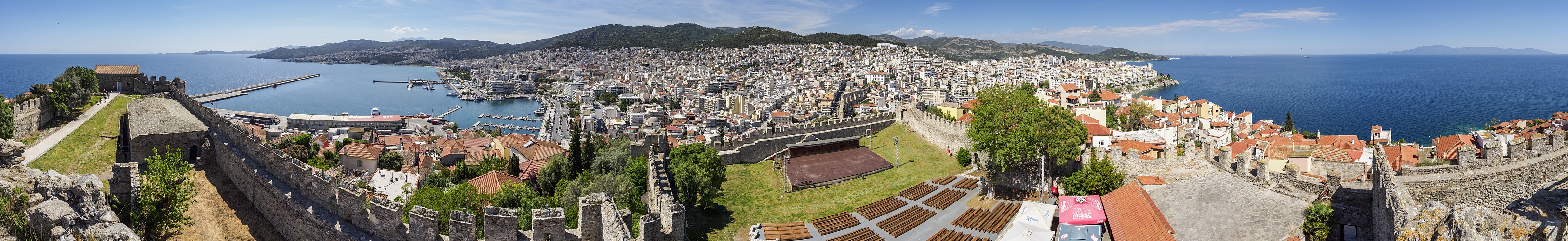 Die Burg von Kavala sitzt auf dem höchsten Punkt der Altstadt-Halbinsel, am besten erkennnbar vom Hafen (Kavala II, #34184). Die heute erhaltene und gut besuchte Anlage ist wohl aus dem frühen 15. Jh. Man bekommt von hier auch einen guten Eindruck der charmanten, modernen Stadt. Schon in der Antike führte die Via Egnatia, der Verkehrsweg von Thessaloniki nach Konstantinopel, durch den Ort. Bemerkenswert der gut erhaltene Aquädukt.
