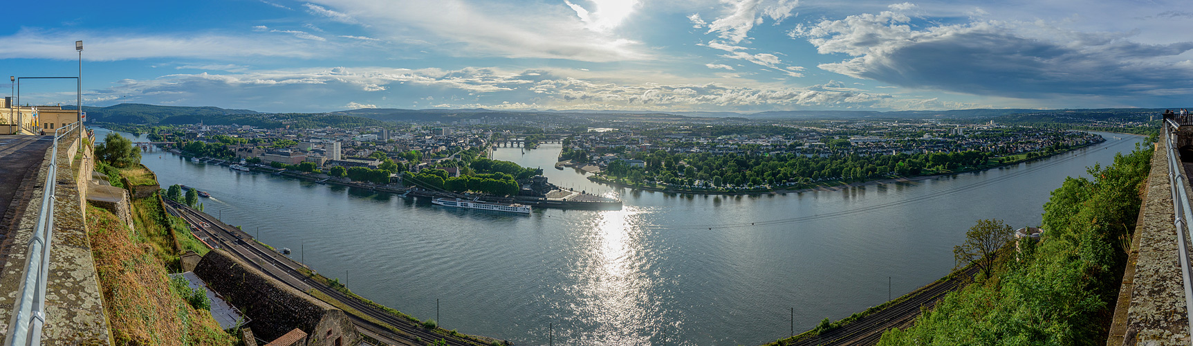 Hier das vorerst letzte Pano meiner Tour. Ich hoffe, dass ich es im Oktober schaffe von Koblenz nach Rüdesheim weiter zu wandern. Nachdem es am Nachmittag ordentlich geschüttet und gewittert hatte, konnte ich fast den ganzen Abend draußen vor der Jugendherberge (links am Bildrand zu sehen) verbringen - es war wunderbar, nicht nur wegen der Aussicht!