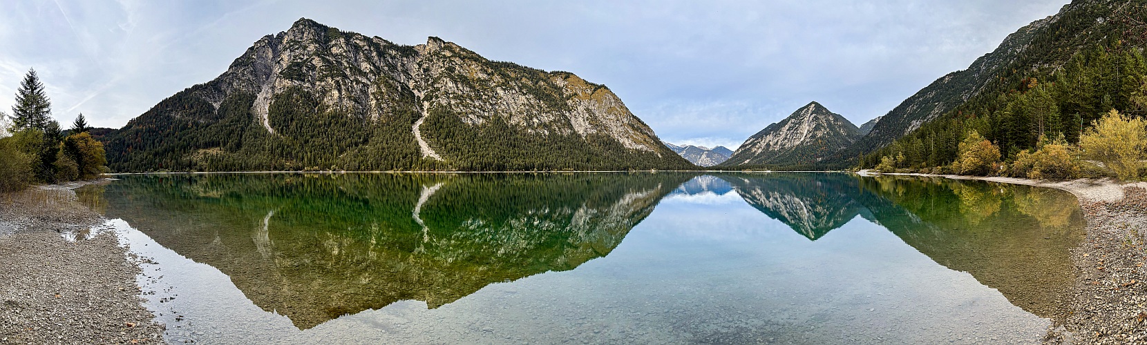 Der Heiterwanger See bietet immer eine gute Möglichkeit, auf einer längeren Anreise in die Berge sich noch mal kurz die Füße zu vertreten. Manchmal springt auch ein Panorama dabei raus.