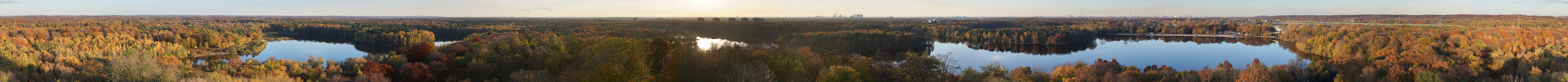 Vom Aussichtsturm in der 6-Seen-Platte im Duisburger Süden hat man freie Rundumsicht. Oft komme ich da auf meinen Trainingsrunden mit dem Rad vorbei. An diesem Abend packte ich mal die Kameraausrüstung und das Fahrradschloss ein. Für Telepanos könnte die Sicht noch etwas klarer sein, aber dafür waren die Farben kräftig. Leider schwankt der Turm etwas, daher ist er für lange Belichtungszeiten wenig geeignet.