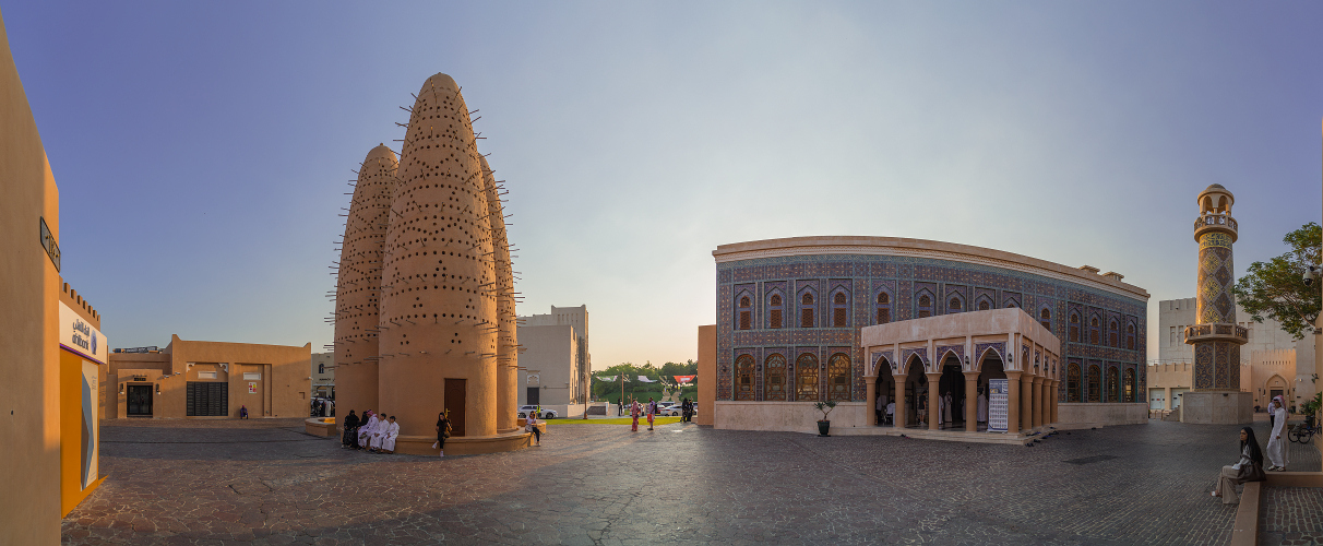 In Katara, einem Vorort von Doha, wurde 2010 von einer türkischen Architektin und persischen Baumeistern diese Moschee errichtet, welche außer Freitags auch Nicht-Muslimen frei zugänglich ist. Zeitgleich entstanden direkt daneben nach historischem Vorbild drei Taubentürme, wenngleich hier nur zum Schmuck, ursprünglich verwendete man ja diese zur Produktion von Dünger durch geschicktes Auffangen des Taubenkots.
