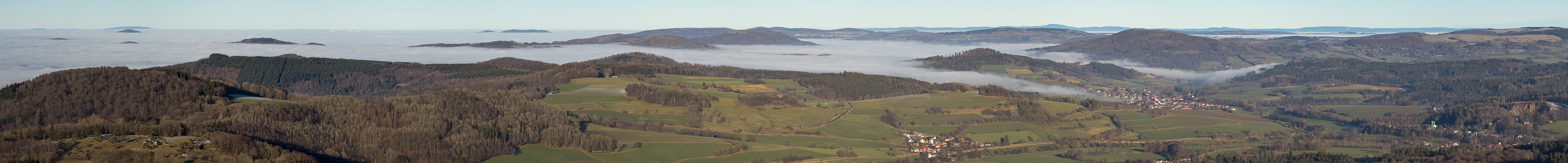 Bekanntlich bin ich sehr gerne auf diesem Berg und deshalb gibt es von dort schon ein paar Panoramen. Ich zeige diesmal eine Variante von einem bisher noch nicht gezeigten Standort: einem Felsriegel an der Ostseite. Diesen erreicht man (zu Fuß), wenn man unterhalb des Gipfels zum Justus-Schneider-Denkmal abbiegt und von dort auf Pfadspuren ein Stück weitergeht.