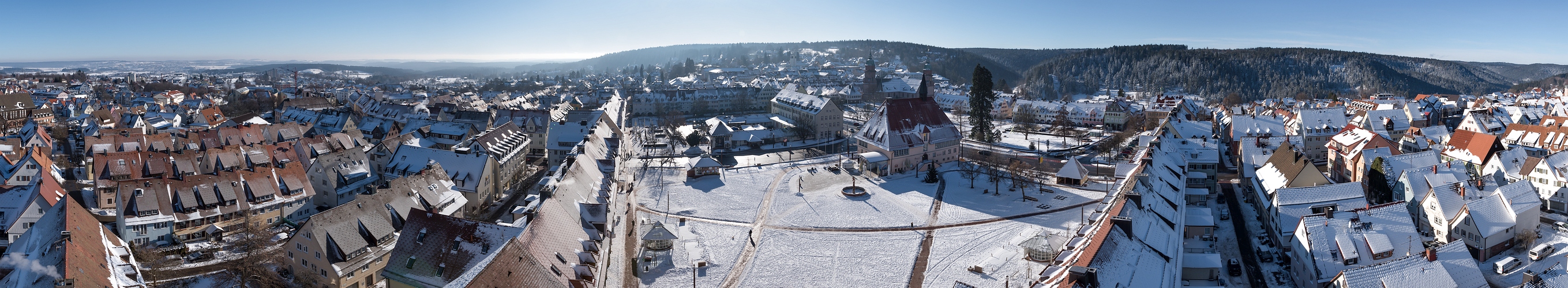 Einen Termin im Rathaus Freudenstadt nutzte ich, um nach Jahren wieder einmal der Aussichtsplattform des Rathausturms in 43 Metern Höhe einen Besuch abzustatten und Euch meine Heimatstadt mit einem Panorama von oben vorzustellen.