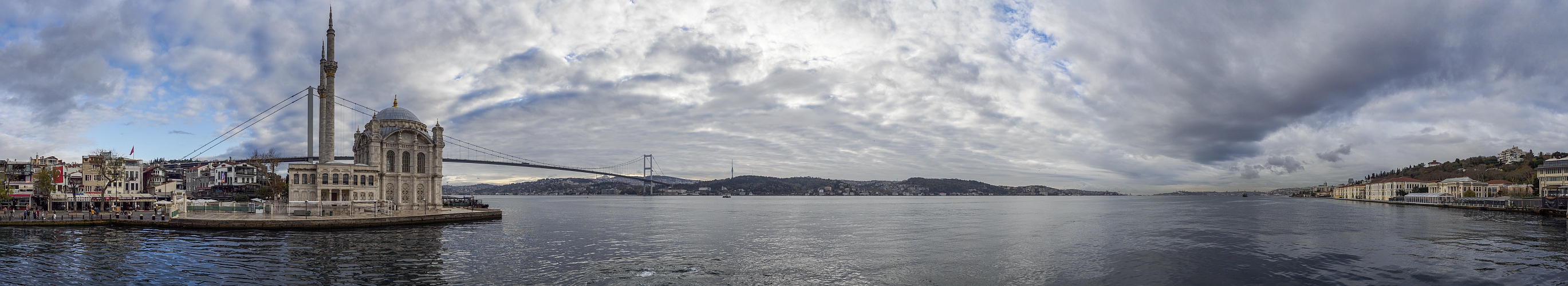 Siehe auch https://de.wikipedia.org/wiki/Putschversuch_in_der_T%C3%BCrkei_2016 und https://de.wikipedia.org/wiki/Ortak%C3%B6y-Moschee Just under 10 minutes after #34596, at the next stop of the line boat up the Bosphorus. You leave the city behind, the places at the pier become more village-like, the buildings lower, and at the same time the clouds clear up a little. The first and oldest motorway bridge over the Bosphorus approaches – the dramatic setting of the attempted military coup on 15 July 2016, now renamed the ‘Bridge of the Martyrs of 15 July’. The surrounding area is dominated by the neo-baroque Mecidiye Mosque, built between 1853 and 1856. Olympus OM-D E-M5 III M.Zuiko 12-45/4 Pro @15mm (=30mm KB) mit Crop 20 HF RAW freihand, ISO 200, 1/500, f8 Lightroom Classic CC, Autopano Giga 4.4.2, IrfanView Direktlink auf Google Maps: https://maps.app.goo.gl/h84D7ujGXbERghqg7 |
